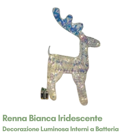 Renna Bianca Iridescente a Batteria - Decorazione Natalizia Luminosa Interni