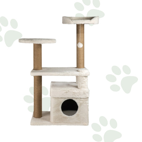 Tiragraffi verticale con cuccia e ripiani 111 cm