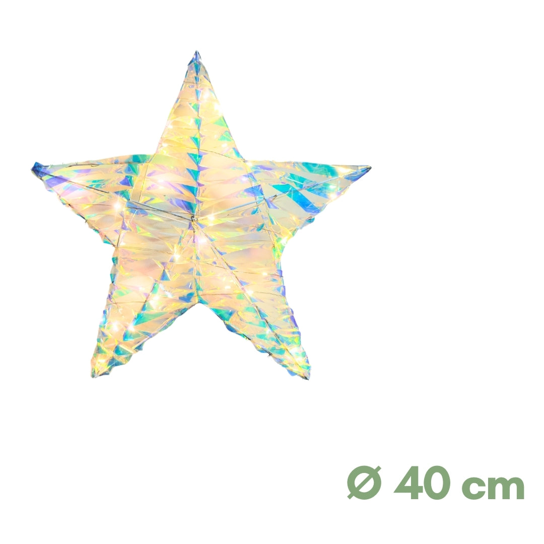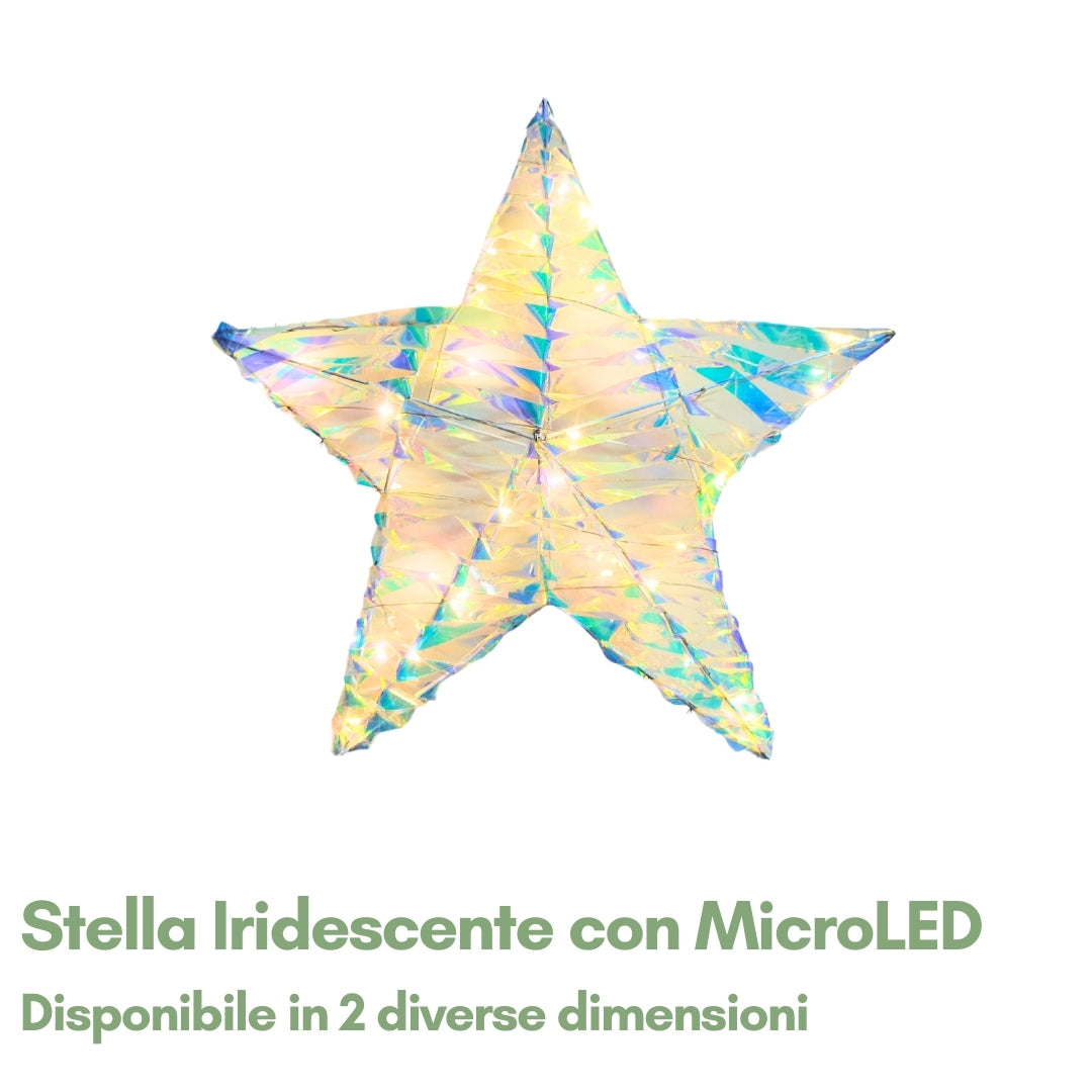Stella Iridescente con MicroLED - Decorazione Natalizia a Batteria Interni