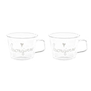 Set di 2 tazze colazione in vetro borosilicato con scritta serigrafata bianca.
