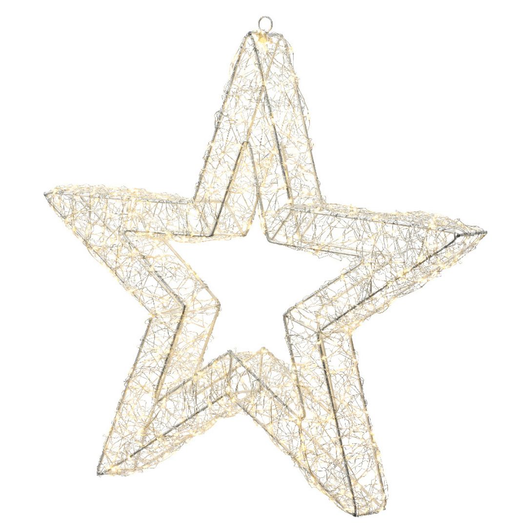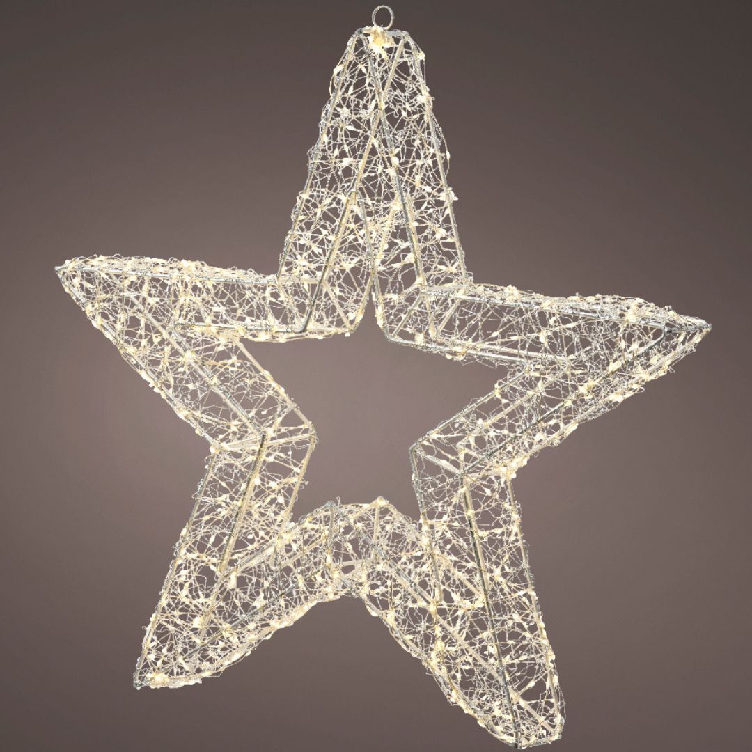 La Stella luminosa è realizzata in metallo resistente ed è dotata di 720 micro LED a luce bianca calda, ideale per uso esterno. Il cavo di alimentazione è di colore argento e ha una lunghezza di 5 metri, garantendo praticità nel posizionamento.