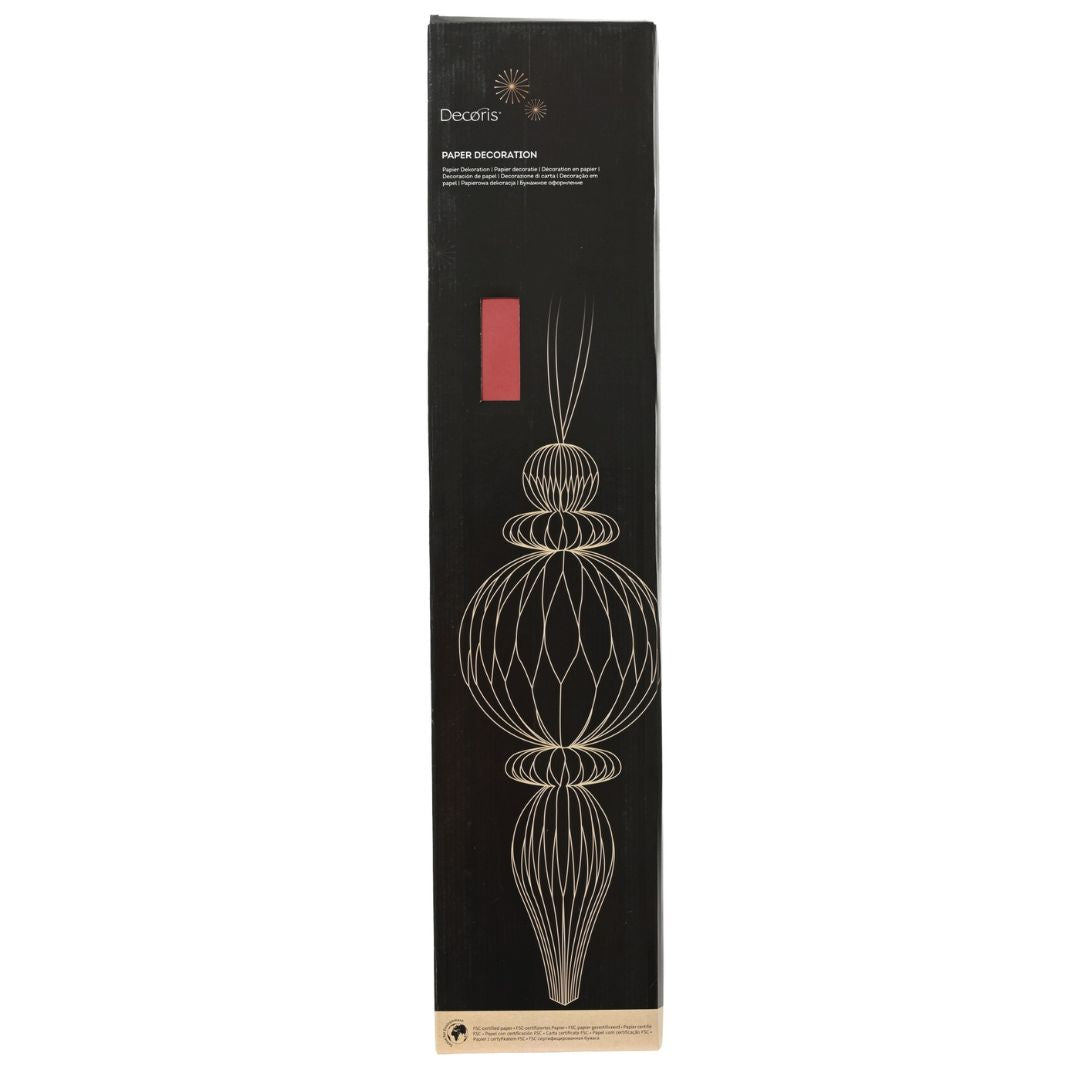 Rendi spettacolare ogni ambiente con le decorazioni in carta alte 80 cm. Con il loro design slanciato e la superficie lavorata, diffondono la luce creando riflessi eleganti e delicati. Perfette da appendere al soffitto, accanto all’albero o in vetrina, aggiungono un tocco scenografico alle decorazioni natalizie.
