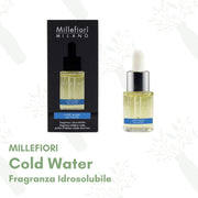 La fragranza "Cold Water" trasforma ogni ambiente in un’oasi di profumo rigenerante, grazie alla sua formula idrosolubile che si dissolve rapidamente in acqua. Ideale per tutti i diffusori ad ultrasuoni Millefiori.