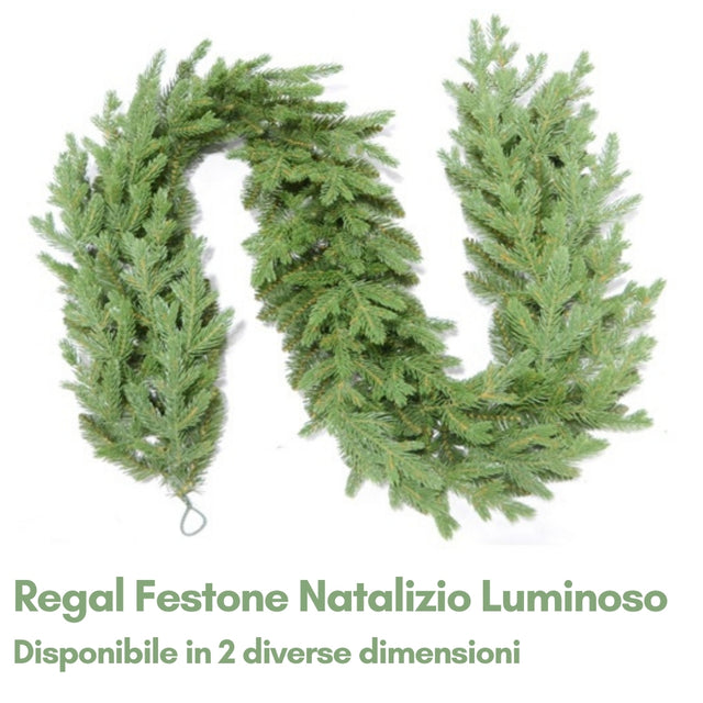 Festone natalizio con microled integrati, disponibile in due lunghezze: 180 cm con 200 microled e 270 cm con 360 microled. Realizzato in materiale misto PE/PVC per un aspetto realistico e una maggiore resistenza.