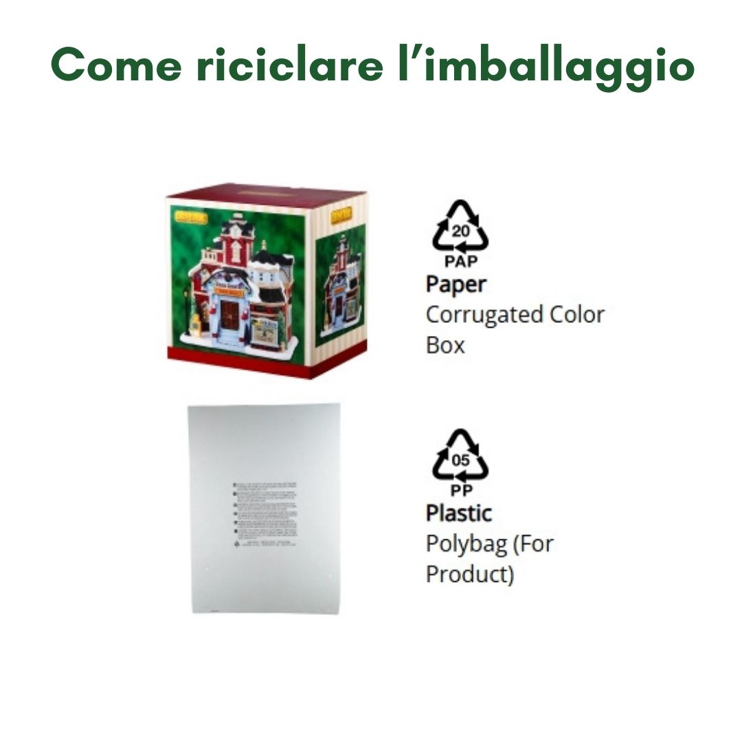 Edificio luminoso Lemax della collezione Vail Village con luci festive. Interruttore On/Off. Compatibile con lampadina LED Moonlander e adattatore.