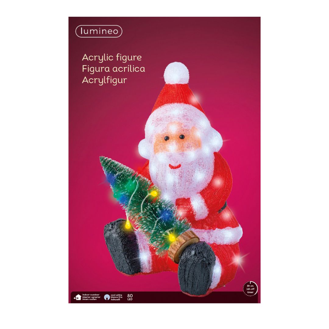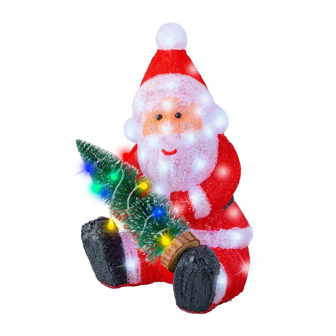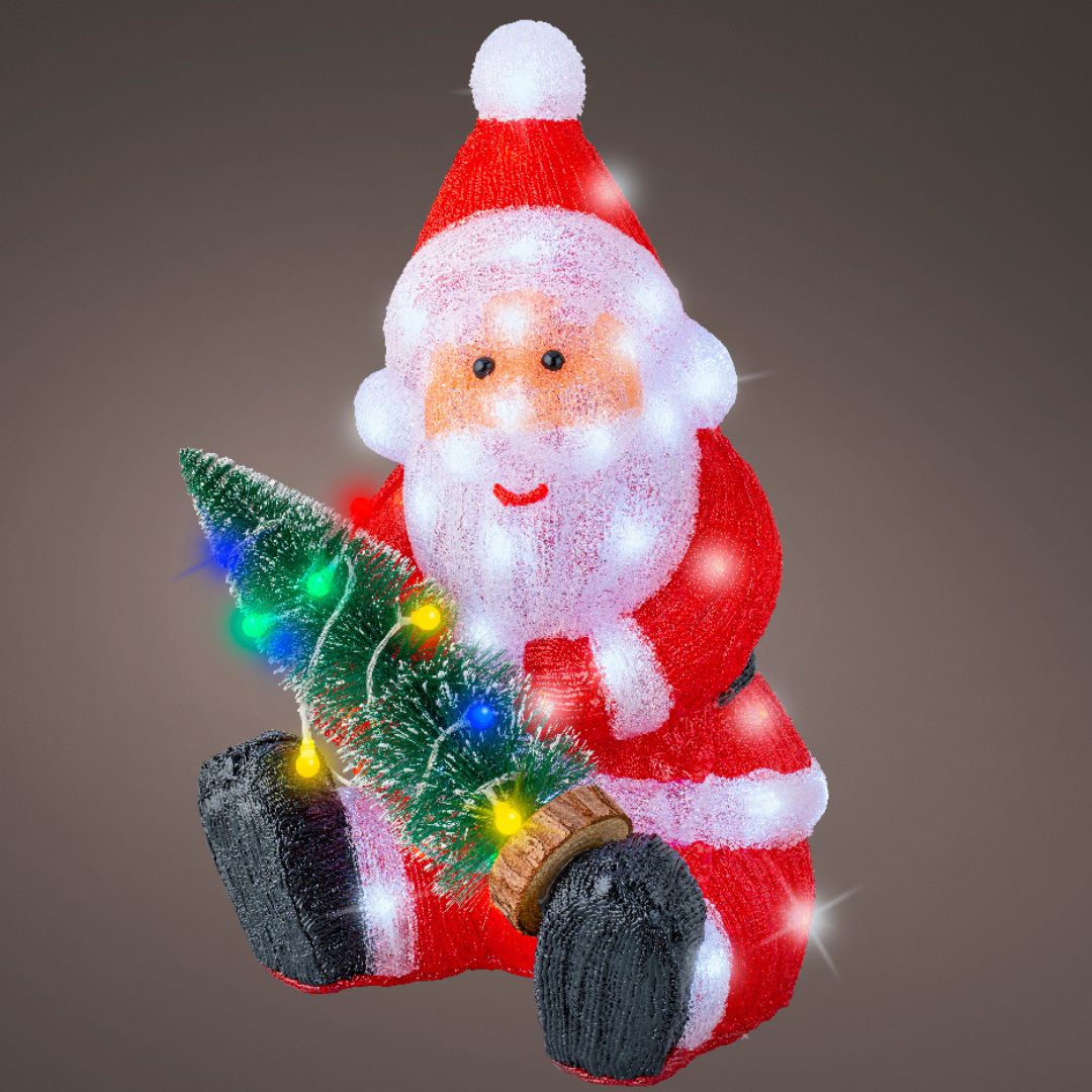 Figura luminosa in acrilico a forma di Babbo Natale con albero: