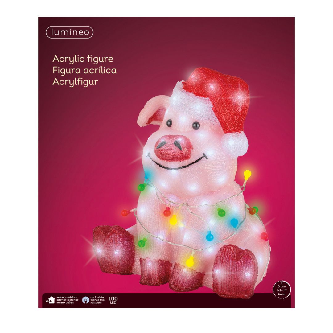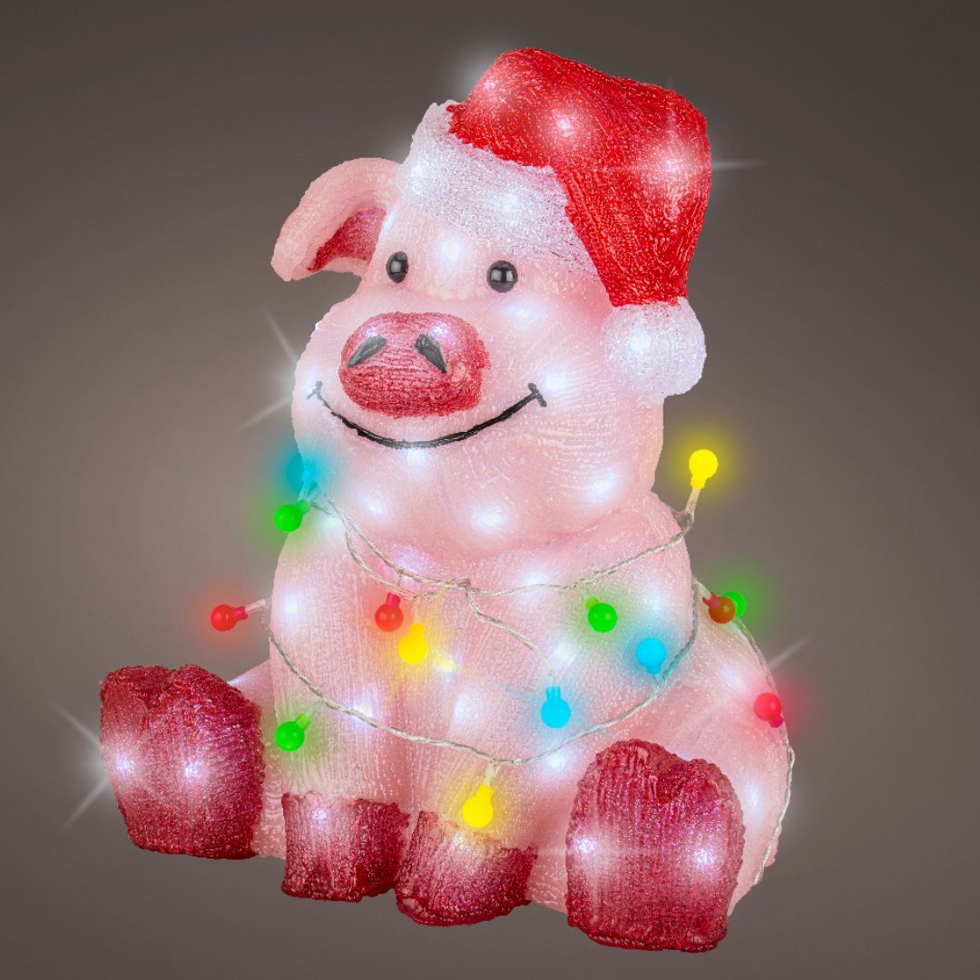 Figura in acrilico a forma di maiale con lampadine colorate con:
