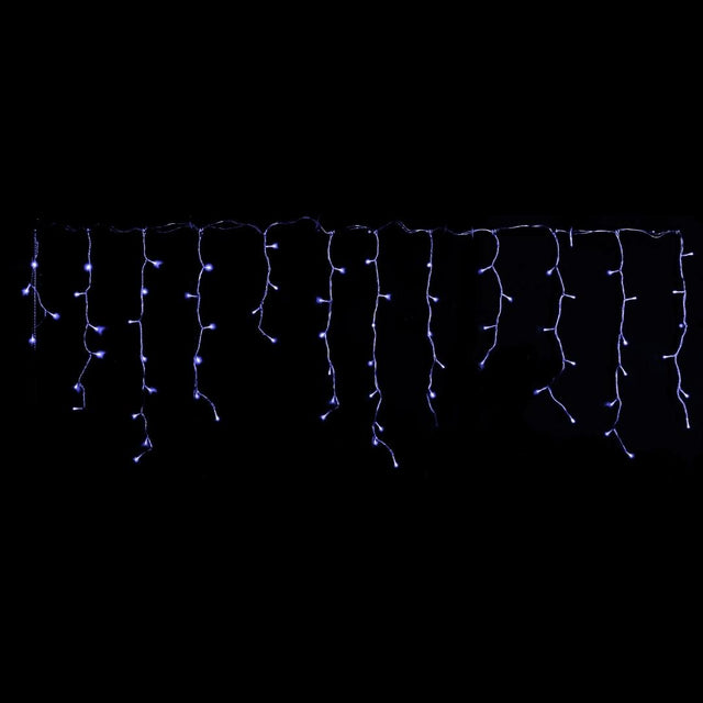 Tenda natalizia con stringhe luminose decorate da 72 led alimentata a batteria e disponibile in due versioni con luci fredde ICE e luce bianca classica.