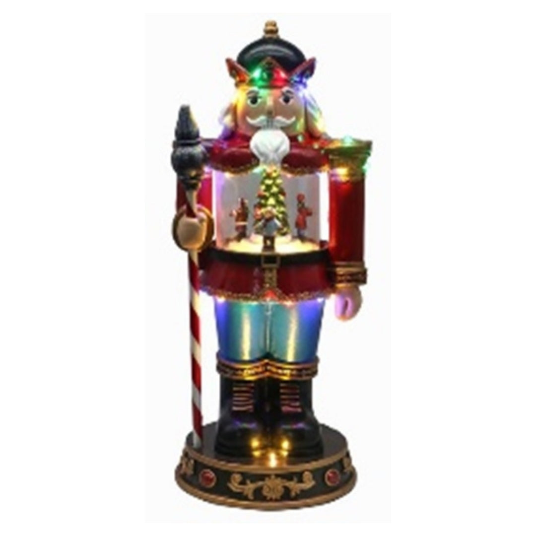 Rivivi la tradizione natalizia con lo Schiaccianoci di Natale con Albero e Bambini in Movimento. Questo schiaccianoci decorativo, arricchito da luci LED e figure di bambini che si muovono attorno all'albero di Natale, aggiunge un tocco di classe e magia alle tue decorazioni festive.