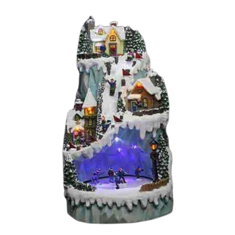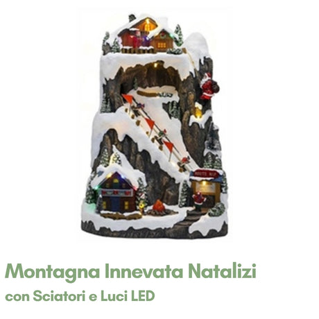 Montagna Innevata Natalizia con Sciatori e Luci LED