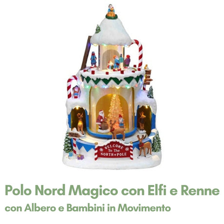 Polo Nord Magico con Elfi e Renne in Movimento e Luci LED