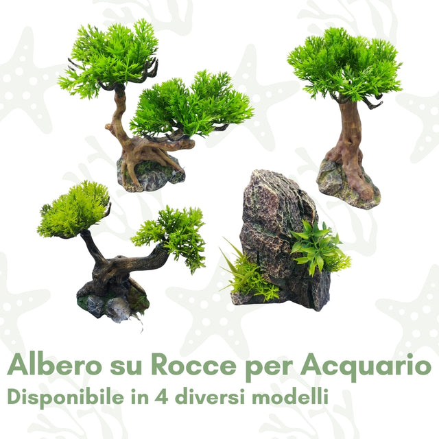 Trasforma il tuo acquario in un paesaggio naturale con le nostre decorazioni Alberi su Rocce. Queste decorazioni in resina rappresentano alberi e vegetazione che crescono su rocce, creando un ambiente realistico e accogliente per i tuoi pesci. Ideali per chi cerca decorazioni per acquari che riflettano l'aspetto naturale di un paesaggio sommerso, arricchendo l'ambiente acquatico con dettagli che migliorano l'estetica e il benessere dei pesci.