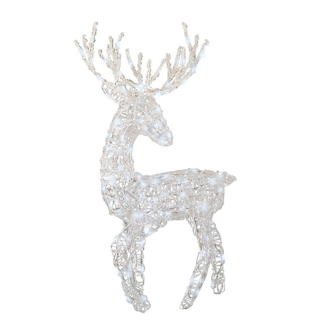 La Renna da Esterno è alta 94 cm ed è decorata da 100 led grandi 5 mm a luce bianca fredda.