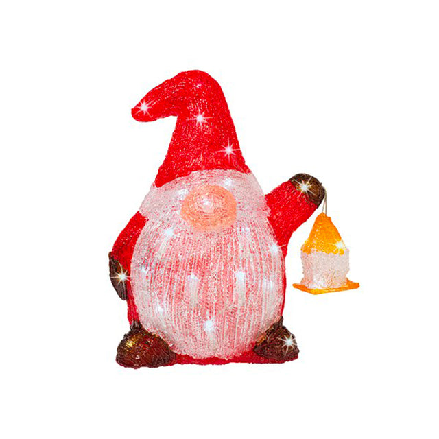 Aggiungi ai tuoi addobbi natalizi un simpatico gnomo natalizio e rendi magica l'atmosfera del tuo Natale! Questo piccolo gnomo in acrilico, brillante e luminosissimo grazie ai 40 led a luce bianca al suo interno, porterà gioia e curiosità nel vostro nel vostro giardino. Grazie alla protezione certificata IP-44 infatti potrete tranquillamente sistemarlo davanti alla porta della vostra casa o in giardino, magari facendogli fare capolino da un cespuglio; con la sua lanterna lucente sembrerà un vero e proprio visitatore arrivato dal freddo Polo Nord! Personaggio buffo delle storie nordiche, questo piccolo gnomo è realizzato in robusto materiale acrilico elegantemente decorato con un effetto vetro trasparente che lo rende un oggetto d'arredo unico.