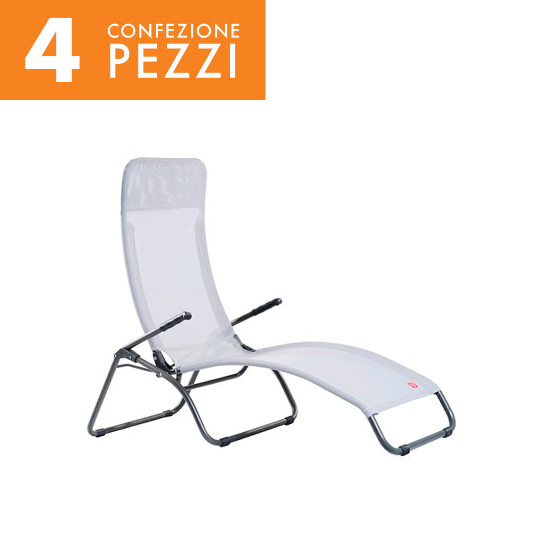 Approfitta della nostra nuova Promo online e concediti il lusso di riposare su Fiam Samba - Lettino prendisole da giardino nel delicato grigio chiaro e che ti proponiamo in un kit da 4 pezzi ad un prezzo imperdibile.