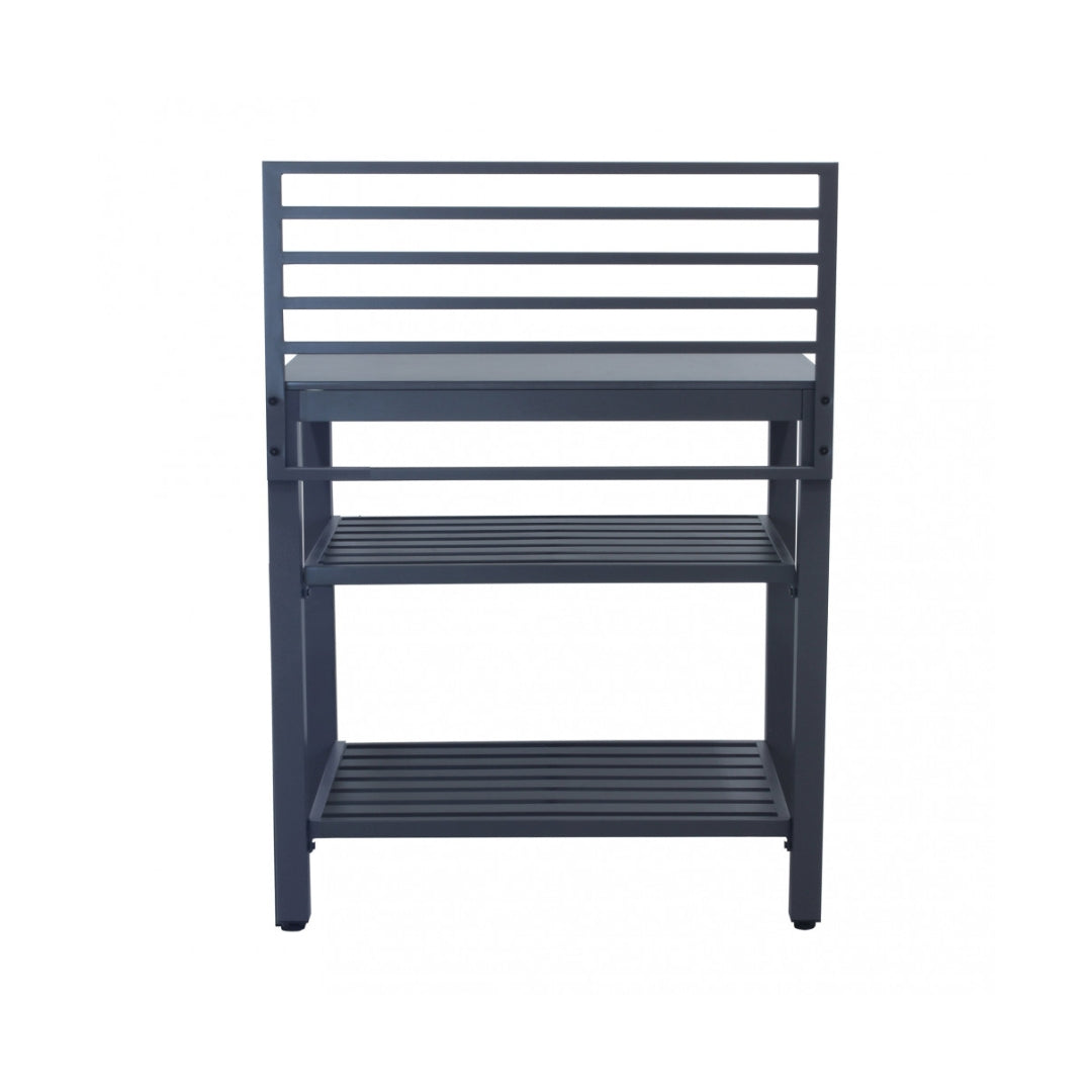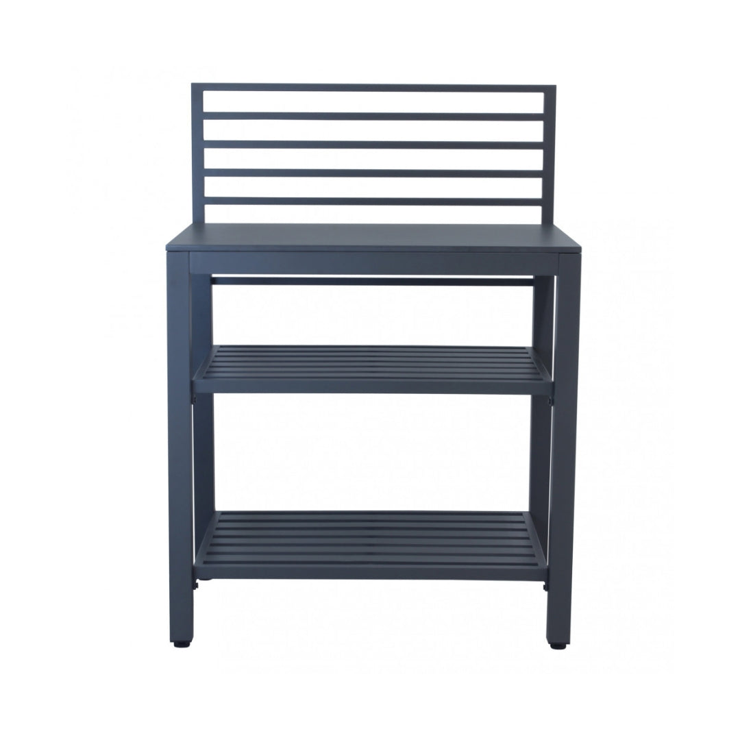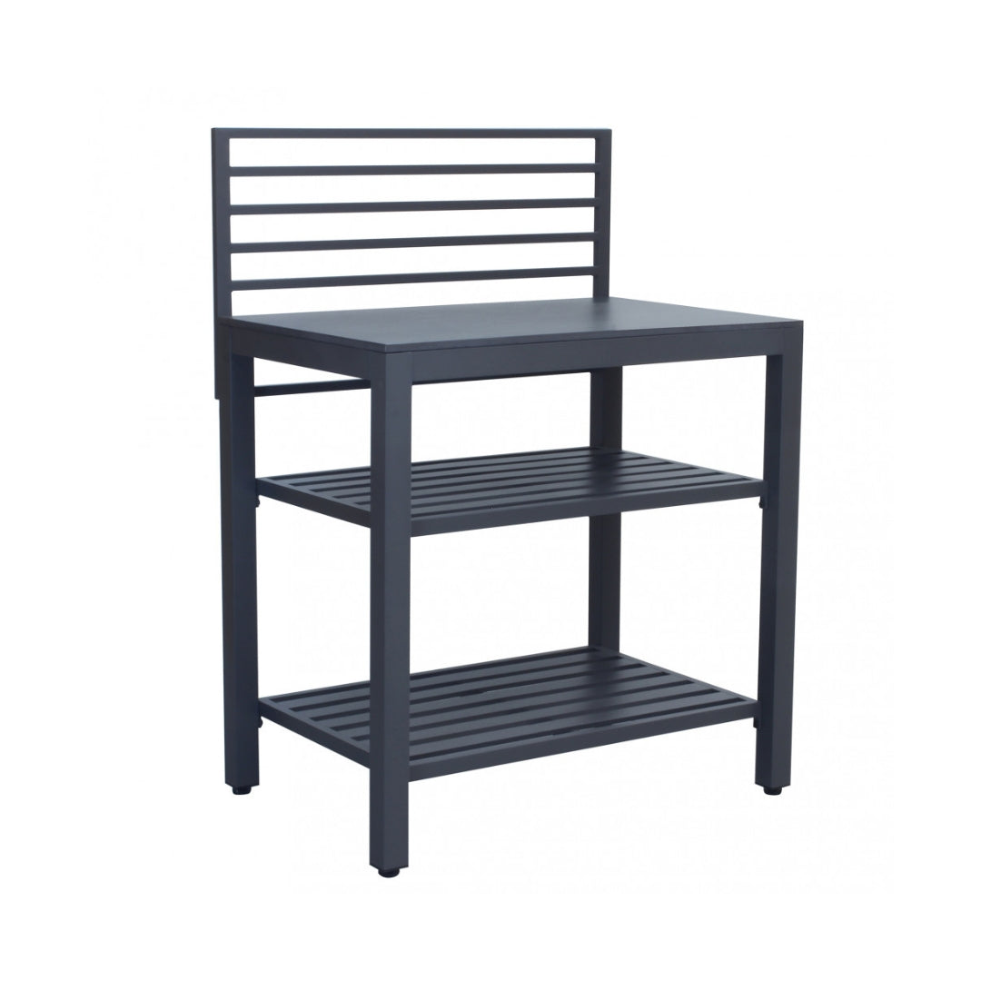 Un arredo con tre livelli di appoggio che arricchiranno la capienza e la composizione del vostro angolo cottura in giardino. Nessun limite di spazio grazie a questo modulo angolare dalla linea moderna e stilosa realizzata in alluminio verniciato color antracite. Funzionalità e design solo le parole chiave per una soluzione che renderà la vostra cucina all'aperto un luogo ameno per la vostra famiglia e i vostri invitati.