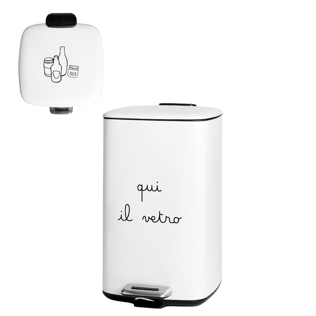 Porta ordine e stile in casa con la pattumiera da interno da 20 litri: il corpo in metallo verniciato bianco e i contenitori interni in plastica la rendono pratica da usare e semplice da pulire. Il decoro testuale sul frontale aggiunge un tocco di personalità, perfetto per la cucina e per chi ama tenere ogni cosa al suo posto.