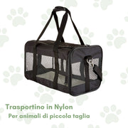 Trasportino in Nylon per animali di piccola taglia leggero, pratico e resistente progettato per offrire al tuo amico peloso un viaggio confortevole e protetto in ogni situazione.